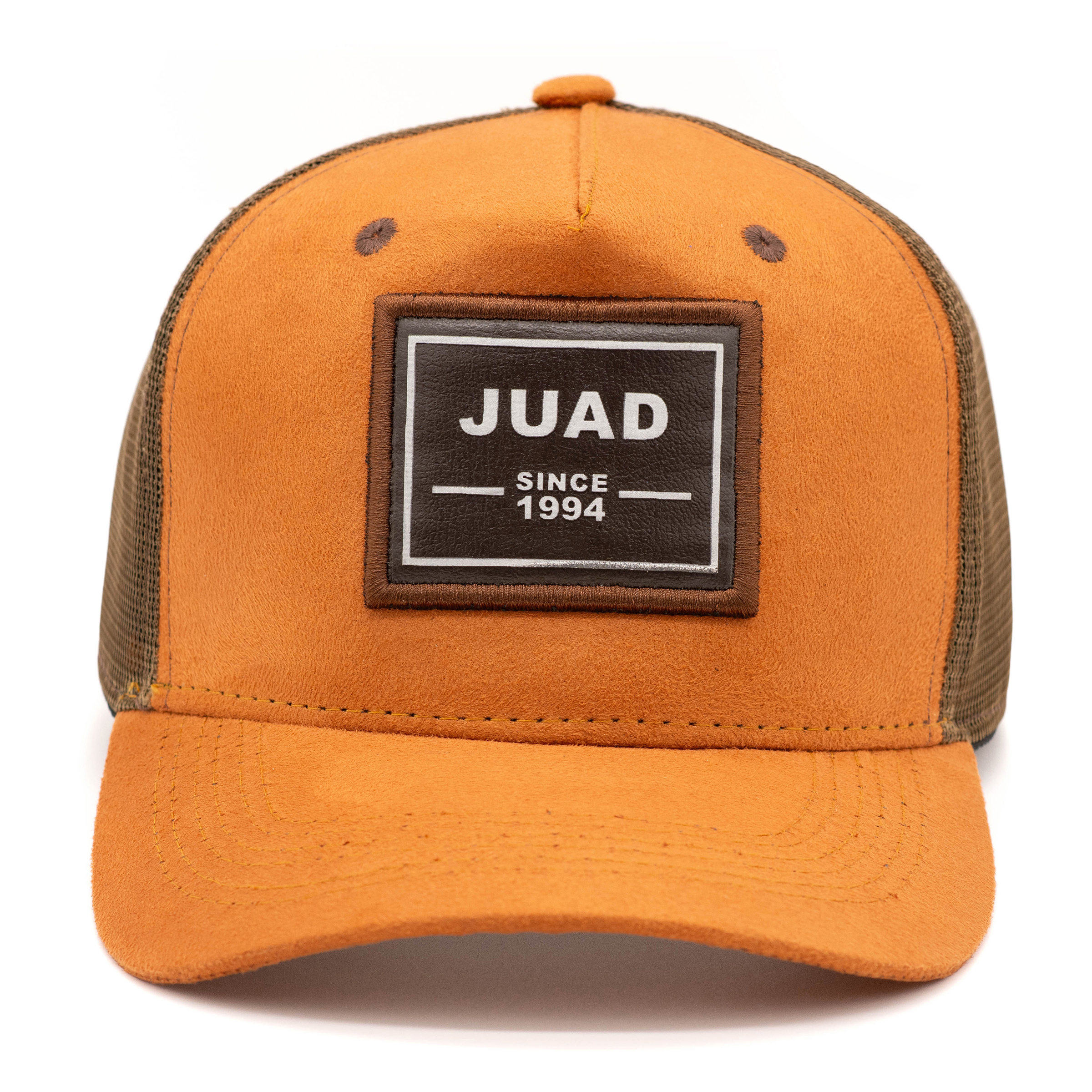 Boné trucker com aba curva, confeccionado em algodão e poliéster, com tela respirável e fechamento ajustável. Possui copa e aba na cor terracota em um camurça sintético, frente com patch em couro sintético costurado com a inscrição "JUAD SINCE 1994" que dá o nome ao boné. Perfeito para o dia a dia, oferece conforto, estilo e proteção solar. Disponível em modelo e tamanho único. Todo estilo do mundo JUAD para o seu dia a dia.