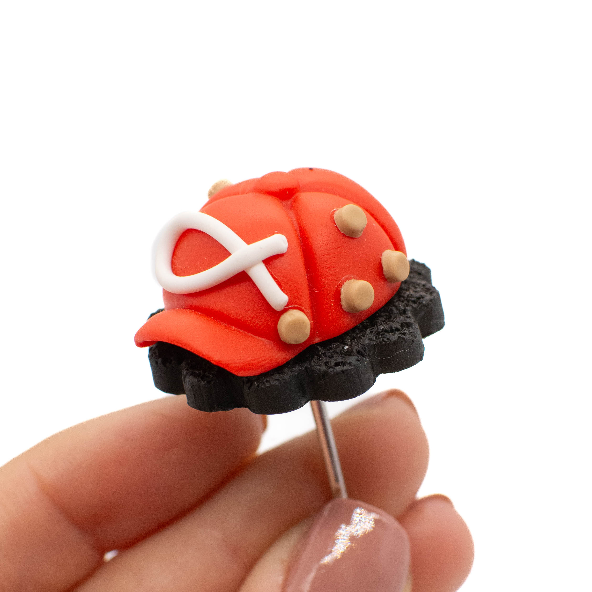 Enfeite de chimarrão em biscuit com o boné nas cores do JUAD. Perfeito para deixar o seu mate com a cara do JUAD.