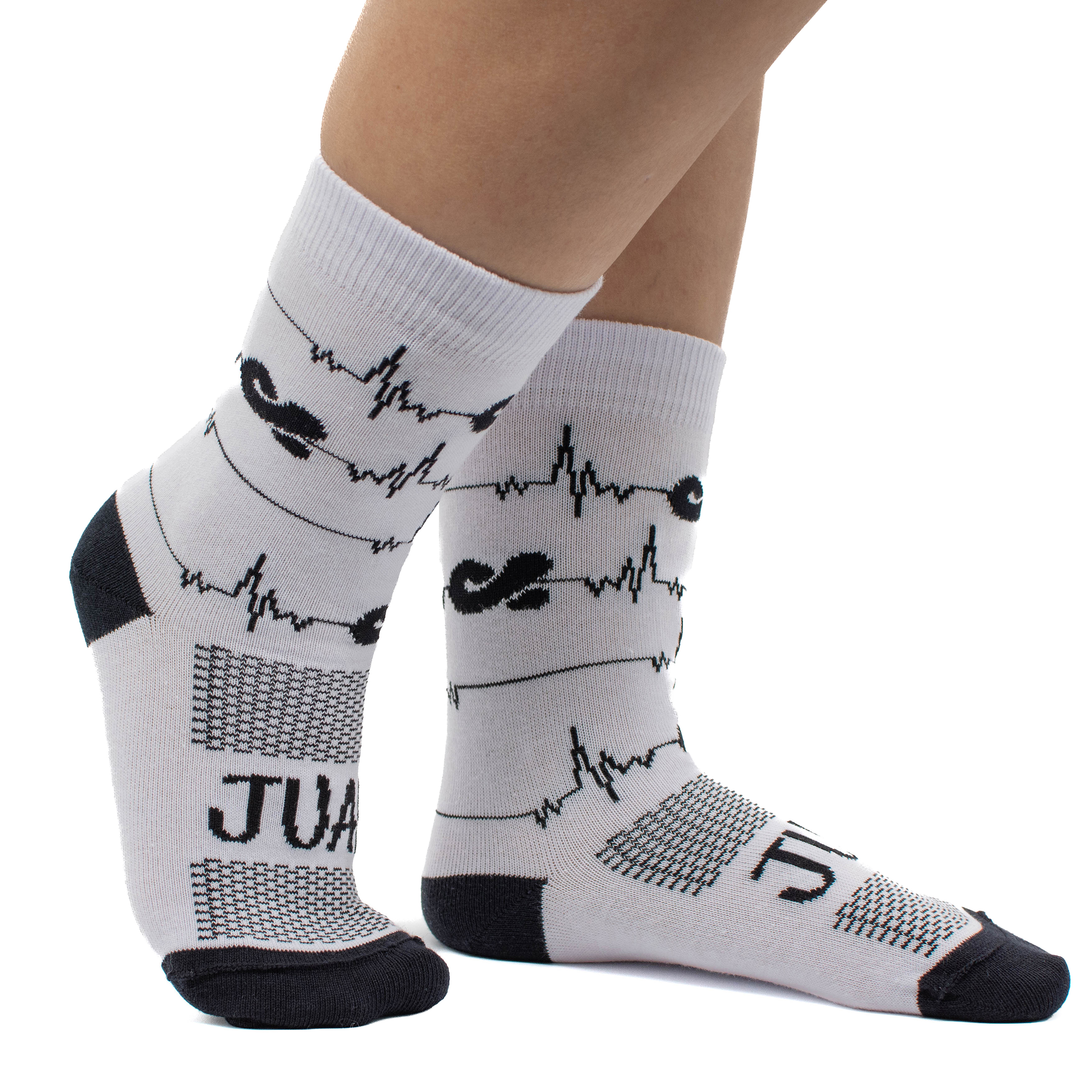 Meia com estampa de batimentos da frequência cardíaca. Meia em algodão, poliamida e elastano. Se o seu coração bate forte por Jesus e pelo Ministério JUAD essa é a meia ideal para você compor o teu look.